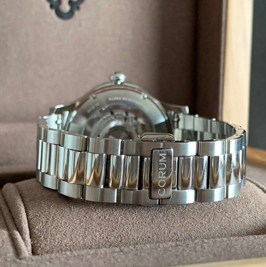 CASSA: Acciaio, diametro 30 mm, spessore 9.8 mm, impermeabilità 5 ATM, vetro zaffiro, quadrante madreperla